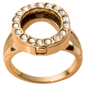 This Nikki Lissoni ring is made from gold plate features sparkly swarovski crystals ,the concept of this design is you can interchange your coin that fits inside to have a different look every time