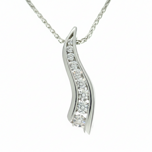 Superb 18 carat white gold journey pendant with 9 round brilliant cut diamonds totalling 0.40 carats, set on an 18 inch 18ct white gold chain.