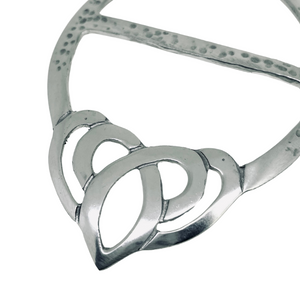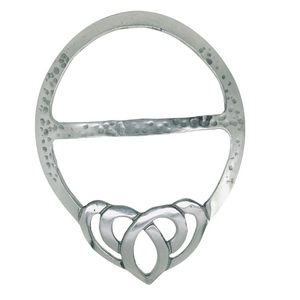 This large Celtic knot scarf ring showcases a timeless Heart Knotwork design, symbolizing eternal love and unity. Expertly handcrafted in Scotland from high-quality pewter, it offers both durability and elegance. Ideal for securing scarves with style, this ring blends traditional Celtic artistry with practical function. Its substantial size makes it a striking accessory that complements a variety of outfits, while the intricate knotwork adds a touch of cultural heritage. Perfect for those who appreciate craftsmanship and meaningful design in their everyday wear.
