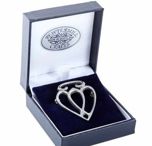 A beautiful large triscal heart pendant, with a timeless design that incorporates a heart with a three pointed knot inside.. This fantastic pewter pendant is hand made in Scotland.