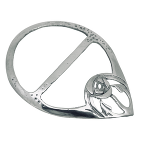 Elevate your style with this stunning large Mackintosh Design pewter scarf ring, masterfully handcrafted in Scotland. Featuring the iconic and timeless Mackintosh pattern, this piece effortlessly blends classic artistry with modern sophistication. Made from high-quality pewter, it offers both durability and elegance, ensuring your scarf stays securely in place while enhancing your overall look. Perfect for those who appreciate fine craftsmanship and distinctive design, this scarf ring is more than an accessory—it’s a statement of refined taste. Treat yourself or a loved one to this exceptional piece and experience the perfect balance of beauty and function.