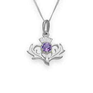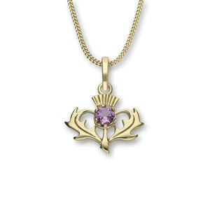 This exquisite thistle pendant celebrates Scotland's iconic national emblem with refined craftsmanship and timeless elegance. Hand-crafted in either sterling silver or 9ct yellow gold, each piece features a meticulously detailed thistle design paired with your choice of three stunning gemstones: deep purple Amethyst for spiritual clarity, vibrant yellow Citrine for warmth and positivity, or earthy Smoky Quartz for grounding energy. The thistle motif carries centuries of Scottish heritage and symbolism, making this pendant a meaningful choice for those with Celtic connections or an appreciation for traditional design. Each gemstone selection offers distinct aesthetic appeal and unique metaphysical properties, allowing you to choose based on both visual preference and personal significance. This pendant coordinates beautifully with the matching brooch and earring pieces from the same collection, enabling you to create a cohesive jewellery ensemble. Whether worn as a standalone statement piece or layered with other pendants, its balanced proportions and quality materials ensure lasting appeal and durability for everyday wear or special occasions.