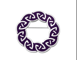 This is a stunning brooch, made from rhodium plated copper and vitreous enamel and handmade in Cornwall, England. This brooch has a celtic Knotwork design, and the brooch is finished with green or purple enamel.