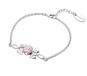 Stunning Sterling Silver rose adjustable bracelet made with inlaid pink Mother of Pearl and inspired by famous Scottish designer Charles Rennie Mackintosh 1868 - 1928.Designed in Cornwall, UK. Material: 925 Sterling Silver Stone: Pink Mother of Pearl Dimensions:Adjustable from: 160mm to: 190mm Length