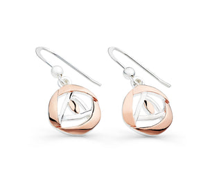 A stylish pair of earrings, crafted from sterling silver and made in Cornwall in England. These drop earrings are shaped into a Charles Rennie Mackintosh design with rose gold plating on the rose segments and drop segments. Each Sea Gems piece comes in it's own presentation box.