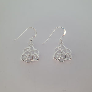 A lovely pair of silver drop earrings, handcrafted in Cornwall, England. These lovely drop earrings have an open celtic knotwork design on hook fittings. Each Sea Gems piece comes in it's own presentation box.