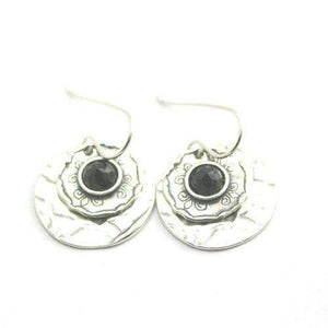 An elegant pair of designer drop earrings, beautifully crafted in hammered sterling silver and set with a choice of peridot, amethyst, garnet or onyx gemstones.