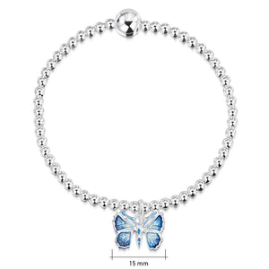 A gorgeous sterling silver bracelet, inspired by the butterflies that can be seen outside Sheila Fleet's workshop during the spring. This lovely bracelet has a little butterfly charm on it with handpainted enamel.
