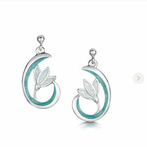 A fabulous pair of handmade sterling silver and enamel earrings, which are beautifully designed by Sheila Fleet, from her stunning new snowdrops collection.