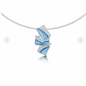 This lovey pendant is crafted from sterling silver and features hand painted enamel. The inspiration for this pendant came from Sheila's interest in rock formation and the unique texture of flagstones.