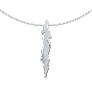 This exceedingly fantastic necklet, is imaginatively designed by Sheila Fleet with sterling silver and beautifully painted by hand enamel work. This outstanding jewellery piece comes in unique colours of enamel and adorned with Cubic Zirconia and pearl (pictured in "Frost" and "Crystal Clear" enamel).