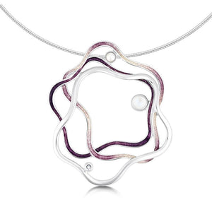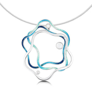 A stunning silver and enamel pendant from Sheila Fleet's spectacular "Tidal Islands" collection. This necklace is set with a CZ, moonstone and pearl and can be made in a selection of three beautiful enamel colours..