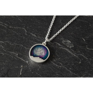 • An eye-catching sterling silver or 9ct yellow gold pendant, meticulously handcrafted by Shetland Jewellery. This exquisite piece captures the ethereal beauty of Shetland's ever-changing skies through three carefully selected enamel colours, each hue reflecting the distinctive atmospheric palette of these northern islands. The small round design offers refined elegance, making it equally suitable as a standalone statement or layered with other pieces. Whether you choose the timeless lustre of sterling silver or the warm richness of 9ct yellow gold, this pendant serves as a wearable tribute to Shetland's natural splendour. A sophisticated accessory for those who appreciate artisanal craftsmanship and meaningful design.