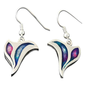 These stunning Mirrie Dancers Silver Earrings feature a charming heart-shaped design, crafted from high-quality sterling silver for lasting shine and durability. Hand-designed by skilled artisans in Shetland, each earring showcases vibrant enamel colors that capture the spirit and beauty of the region. The lightweight silver hook fitting ensures comfortable wear throughout the day, making them perfect for both everyday use and special occasions. Elevate your accessory collection with these unique earrings that blend traditional craftsmanship with a lively, modern touch. A truly captivating piece that draws attention and sparks conversation wherever you go.