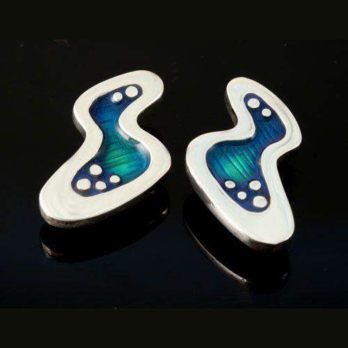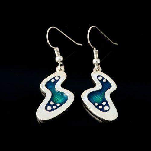 A stunning pair of earrings crafted from sterling silver and lovely blue green enamel colours, inspired from the sea around the Shetland Isles.