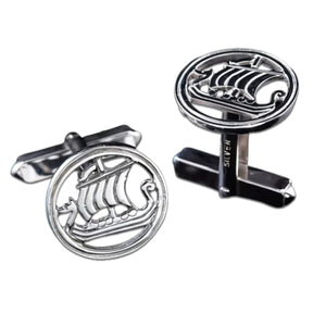 These exceptional cufflinks draw inspiration from the Nordic maritime heritage, showcasing an intricately detailed Viking longship design. Handcrafted by skilled Shetland artisans, each pair is meticulously fashioned from either highly polished sterling silver or 9ct yellow gold, ensuring lasting brilliance and durability. The longship motif captures the essence of Viking seafaring tradition, making these cufflinks a sophisticated choice for those who appreciate historical craftsmanship and meaningful design. Whether worn for formal occasions or as a statement of cultural appreciation, these pieces combine authentic heritage with refined elegance. The superior quality of materials and expert finishing guarantee they'll become treasured accessories in any discerning wardrobe.