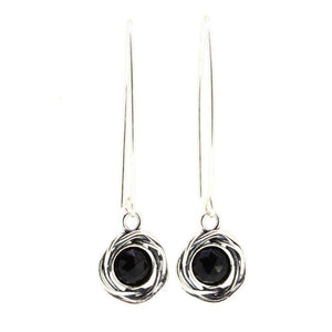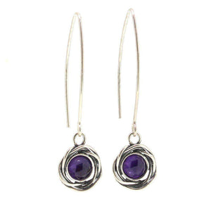 These lovely drop earrings are made by the designer Tamir Zuman and handcrafted using highly polished sterling silver. The intricate silver design at the bottom nestled with a stunning stone of Onyx or Amethyst.
