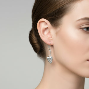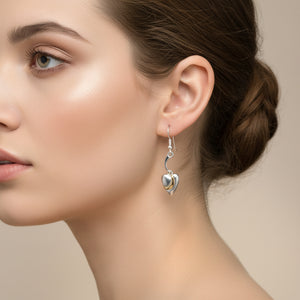 A beautiful pair of drop earrings, designed by Theresa Shearer and crafted by Aurora Jewellery in Orkney, Scotland. These earrings are inspired by pebbles found on Orkney's shores that have been worn down by the sea into heart shapes. Available in Sterling Silver, Sterling Silver and Yellow Gold or 9ct Yellow Gold.