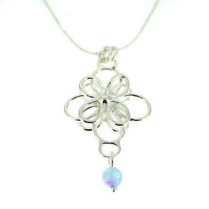 A sensational, sterling silver pendant with an intricate flower design. This lovely piece is available set with cultured freshwater pearl, onyx or opaline and is set on an 18" sterling silver chain. Matching earrings are also available.