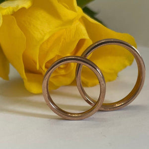2 Rose gold wedding rings with a groove round the centre. Only one ladies and One Gents left in stock. Sold separately.