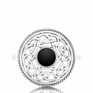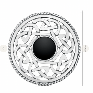 This is a delightful sterling silver brooch, with an oxidised silver background, which creates an interesting contrast effect. The brooch design was inspired by the Celtic artwork from the late 8th century.