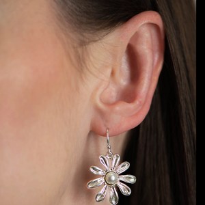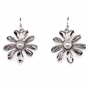 Exquisite designer stud earrings crafted in sterling silver has a contemporary Daisy design and set with a cultured freshwater pearl. With its sleek and modern design and gorgeous cultured freshwater pearl, these earrings are a must-have for any fashion-forward woman. Crafted with high-quality sterling silver, they are as durable as they are stunning.