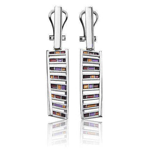Fabulous silver and enamel earrings from Daniel Vior's DNA collection. This extraordinary peice is made by hand from rhodium plated sterling silver, the enamel work is hand-painted along with the colours that are truly stunning. This breathtaking design is genuinely a work of genius.