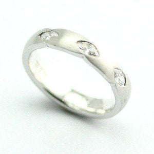• An incredibly attractive, satin finished, diamond wedding ring set with three ten point marquise cut diamonds.