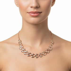 • A gorgeous rose gold coloured necklace from our fashion jewellery section. A lovely addition to a sweater or a black dress ..
