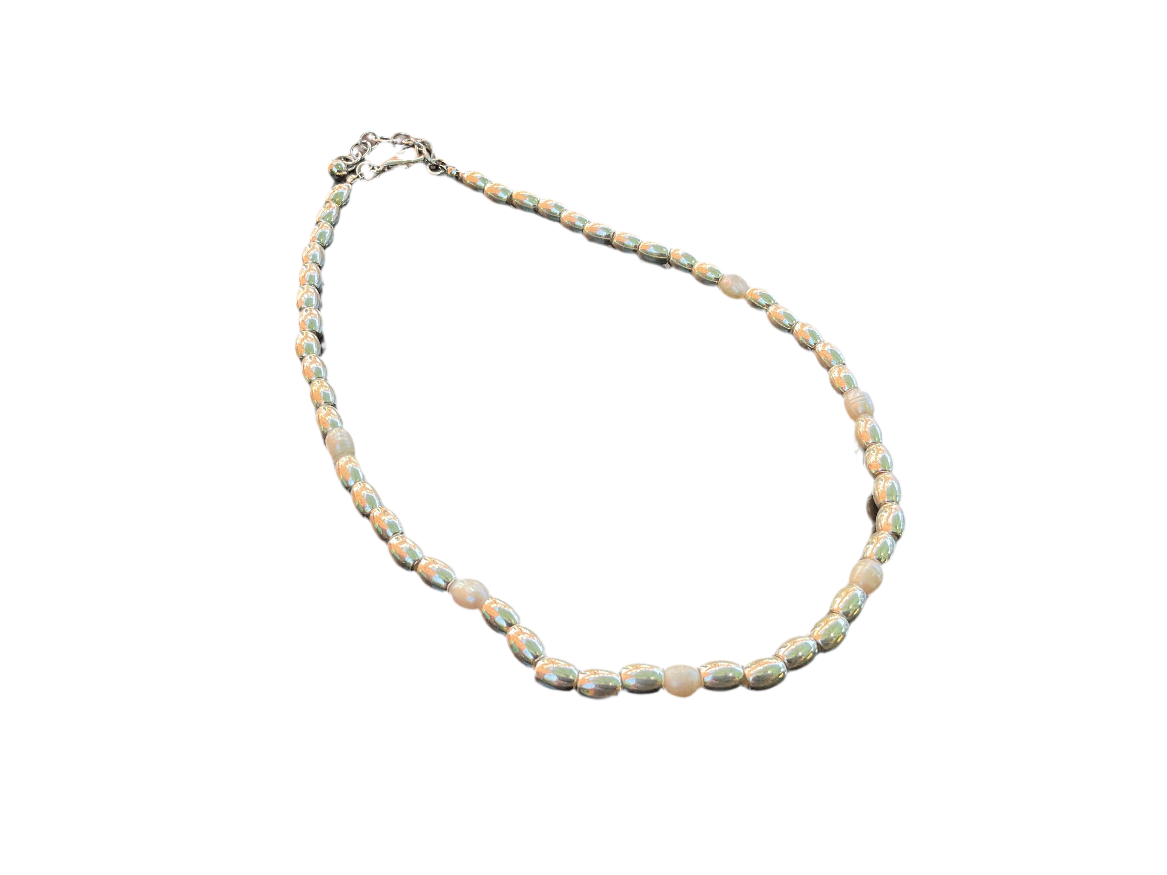 • A beautiful  leatherette necklace with silver coloured triangles from our fashion jewellery section.  .Affordable and stunning on top of a dress or sweater.