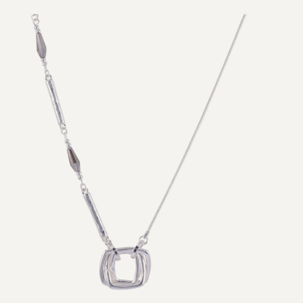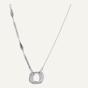 A stunning long silver coloured multi chain from our fashion jewellery section .Affordable and stunning on top of a dress or sweater. Abstractly set with semi precious stones..