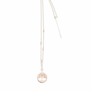 A stunning silver and rose gold coloured necklace from our fashion jewellery section. This tree of life necklace is a very special long necklace and we have only one left in stock. Grey beads with rose gold coloured beads accentuate the beauty of this lovely long necklace.