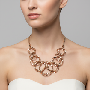 A stunning rose gold coloured necklace from our fashion jewellery section. This necklace is a very special necklace and would look stunning on a night out or a summers day.