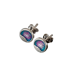 These exquisite stud earrings capture the ethereal beauty of Shetland's ever-changing skies through masterful enamel work. Crafted in either sterling silver or 9ct yellow gold, each pair features three distinct enamel hues that evoke the dramatic atmospheric displays unique to these northern islands. The compact round design makes them versatile enough for everyday wear whilst maintaining the refined elegance befitting a treasured keepsake. Handcrafted by skilled Shetland artisans, these earrings represent a perfect marriage of artistry and wearability—a subtle yet meaningful way to carry the essence of Scotland's most northerly isles with you.