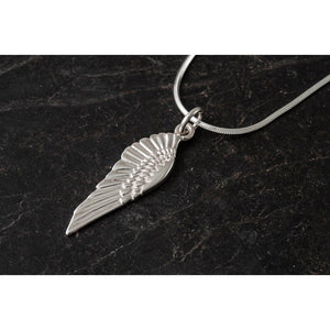 An eye-catching pendant handcrafted from sterling silver or 9ct yellow gold by Shetland Jewellery, this piece draws inspiration from Freija, the Norse goddess of love and beauty. The distinctive wing design captures the essence of divine flight and freedom, making it a meaningful choice for those drawn to Norse mythology and symbolism. Each pendant is meticulously crafted to showcase fine detail, with the wing motif creating an elegant silhouette that catches light beautifully. Whether you select the lustrous warmth of 9ct yellow gold or the timeless sophistication of sterling silver, this pendant works as a standalone statement piece or layered with other jewellery. The FRP07 design reflects authentic Shetland craftsmanship, combining traditional techniques with contemporary aesthetics to create a piece that transcends seasonal trends and complements both casual and formal wardrobes.