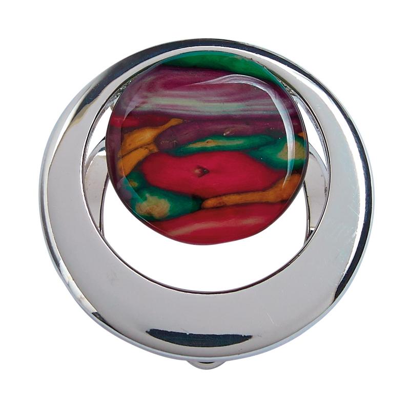 If you need something to keep your scarf round your neck, this gorgeous round scarf ring from Heather Gems could be what you need. Handcrafted in Scotland in silver plated metal and finished with a large and bright heathergem on the front. Each heathergem is unique, due to the nature of the gem making process, no two gems will ever be the same.