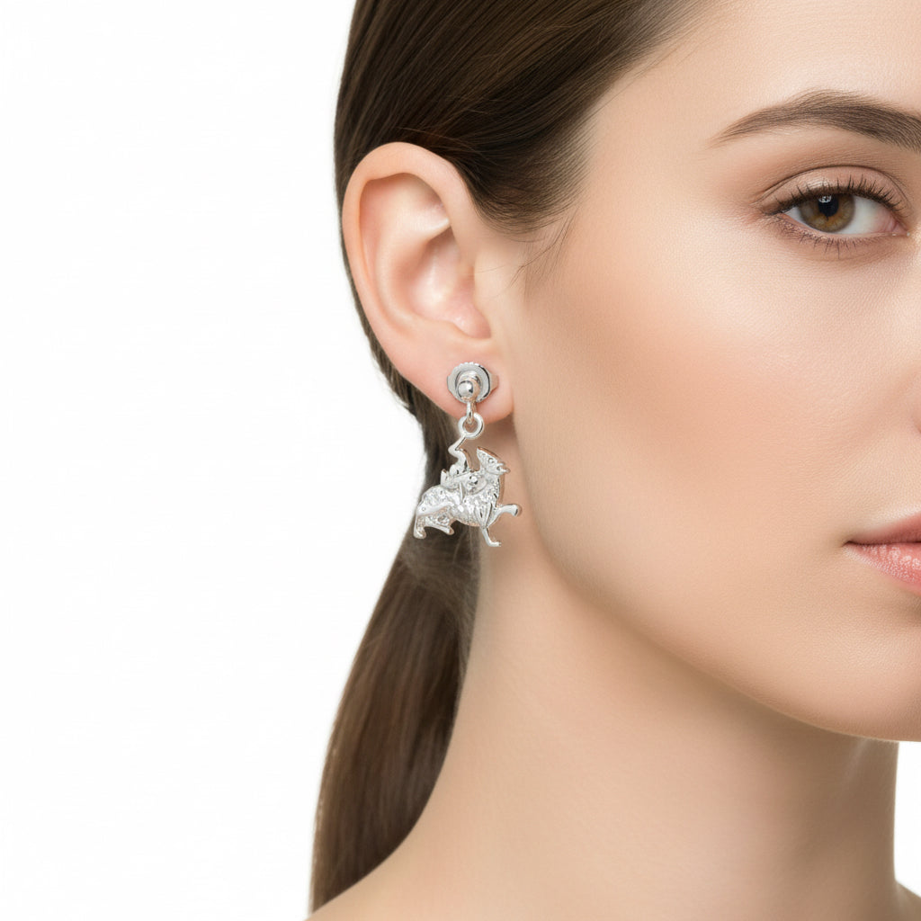 These fierce Maeshowe dragon earrings are inspired by the dragon carving found at Maeshowe from the time of the Vikings, bringing ancient Nordic heritage to your everyday style. Meticulously crafted in sterling silver by Aurora Jewellery in Orkney, Scotland, each pair captures the bold spirit and intricate artistry of Viking-era design. The detailed dragon motif serves as a striking statement piece that celebrates Celtic and Norse history while adding character to any outfit. Perfect for those who appreciate meaningful jewelry with cultural significance, these earrings combine exceptional craftsmanship with timeless appeal. Wear a piece of Viking legacy with confidence and distinction.