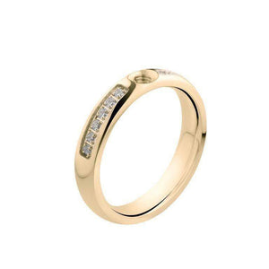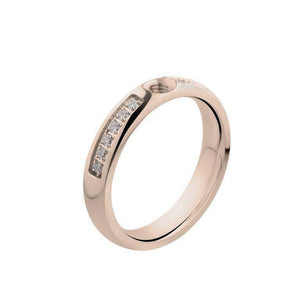 A beautiful designer ring with stunning cubic zurconias going half way around the band made by melano designer jewellery, hand crafted from stainless steel with rose gold and yellow gold plating. With this jewellery you can choose settings of pearls, crystals, CZ and more to add to your ring to make it your personal piece of jewellery. *This ring requires the SMALL screw in tops.*