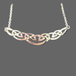 A particularly desirable sterling silver Celtic necklace, with a classic design that incorporates a magnificent interlacing Celtic knot-work pattern. This luxurious jewellery piece is hand-crafted in Glasgow, Scotland by Mithril Jewellery.