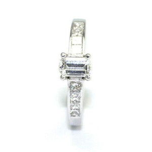 This is a lovely 18ct white gold with emerald and princess cut diamonds engagement ring. This ring has an elegant design and is set a high quality half carat emerald cut diamond centre stone and 0.65 carats of princess cut diamonds on the shoulders. The total diamond carat weight is 1.15 carats.