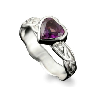 Discover the enchanting beauty of the Samphrey Celtic Heart Ring, a stunning handcrafted piece that captures the spirit of Celtic heritage. This exquisite ring showcases an intricate Celtic knot design framing a mesmerizing heart-shaped amethyst gemstone, symbolizing love and spiritual clarity. Meticulously crafted by skilled artisans in Shetland, each ring is available in your choice of lustrous sterling silver, elegant white gold, or warm yellow gold—allowing you to select the metal that perfectly complements your personal style. Every piece bears an official Scottish hallmark, guaranteeing authentic craftsmanship and premium material quality. Whether worn as a meaningful personal treasure or gifted to someone special, this Celtic heart ring blends timeless artistry with genuine gemstone beauty, making it a cherished addition to any jewelry collection.