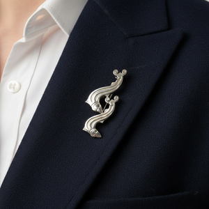 Expertly handcrafted from sterling silver, this Scottish Salmon Shaped Silver Brooch showcases two salmon. The intricate design pays homage to Scotland's rich fishing heritage, making it the perfect accessory for any occasion. Delight in the beauty of the Scottish landscape with this stunning piece.A spectacular brooch, with a timeless design that entails an eye-catching style. This fantastic piece is hand made from sterling silver and is crafted in Glasgow, Scotland by Mithril Jewellery.