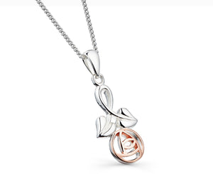 A lovely pendant handcrafted by Sea Gems in Cornwall, England. The pendant is made from sterling silver and rose gold plating on the rose segment. Each Sea Gems piece comes in it's own presentation box. Set on a 16-18 inch sterling silver chain.