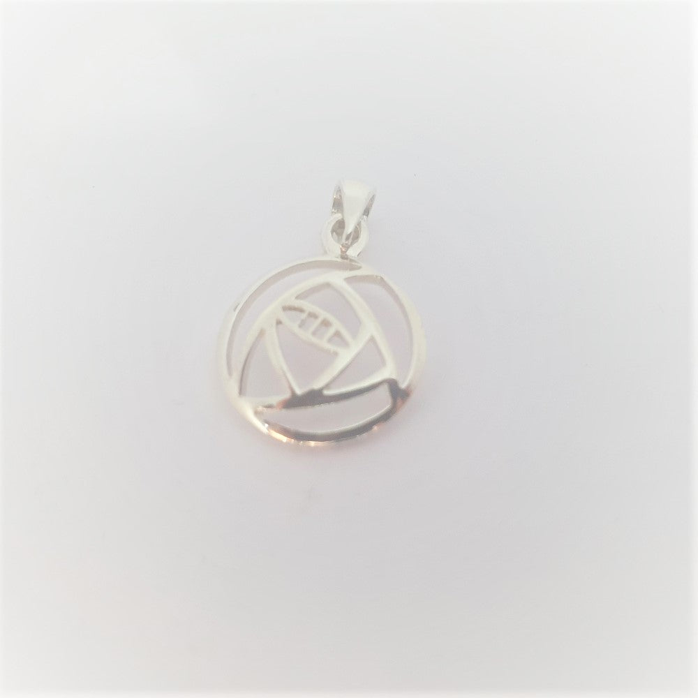 A captivating pendant handcrafted by Sea Gems in Cornwall, England. The pendant is made from sterling silver with an open Mackintosh rose inspired design. Each Sea Gems piece comes in it's own presentation box. Diameter 15 mm.