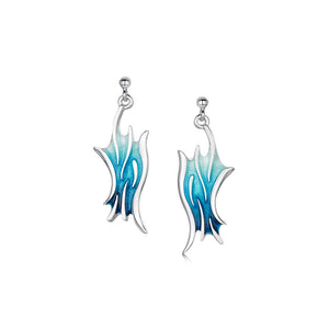 These gorgeous sterling silver and enamel 'Sea Motion' drop earrings are hand crafted in Orkeny, this collection is inspired by the calming motion of the ocean and these earrings look like waves.