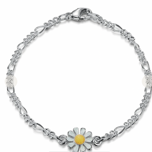• This superb floral daisy bracelet design is hand crafted from sterling silver and features lovely hand painted enamel, made up of four pretty daisies joining together with a linked chain.