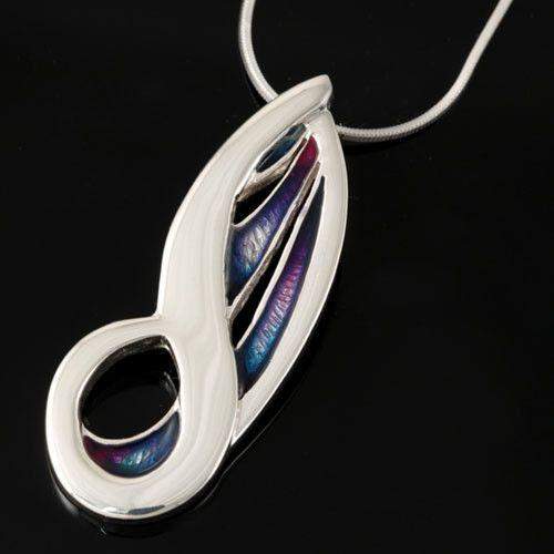 The Mirrie Dancers Pendant - MDP22 Shetland captures the breathtaking beauty of the northern lights over Shetland in a unique and striking design. Crafted from high-quality sterling silver and vibrant enamel, this pendant showcases the swirling, colorful spectacle of the aurora borealis in an eye-catching shape that stands out from typical jewelry. Paired with a sleek 18-inch snake chain, it sits comfortably and securely around your neck, making it perfect for daily wear or special occasions. Celebrate the magic of nature with this exquisite piece that combines artistry and craftsmanship in a truly memorable way.