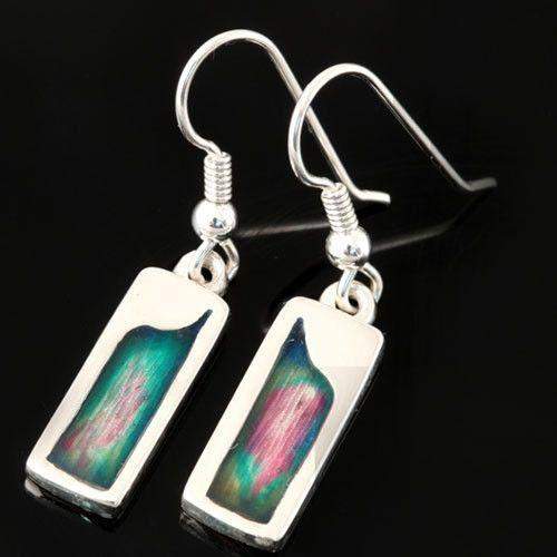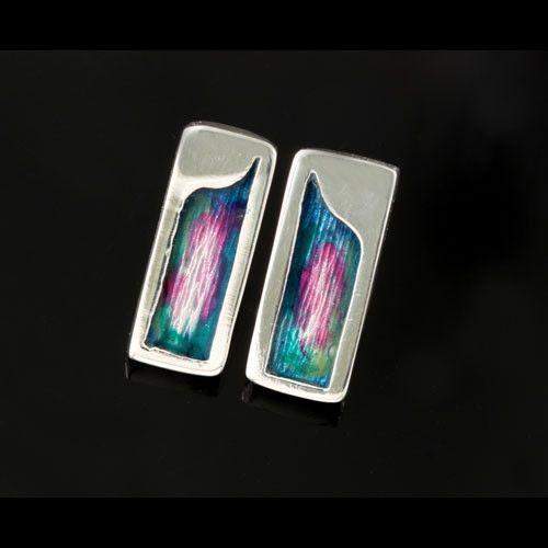 This stylish, square earring design is made from sterling silver with vibrant enamel colours with a silver hook fitting, handcrafted by Shetland Jewellery.