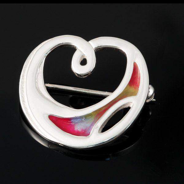 A stunning brooch from the Shetland jewellery's prestigious Simmermal collection, meticulously hand-crafted from sterling silver and complemented by vibrant enamel detailing. This piece exemplifies traditional craftsmanship combined with contemporary design sensibilities. The brooch features expertly applied enamel work that brings colour and character to the precious metal base, making it an ideal accessory for those who appreciate artisanal jewellery with cultural significance. Perfect for adding a distinctive touch to any outfit, this brooch serves as both a functional fastening and a wearable work of art. An excellent choice for collectors of fine jewellery or as a meaningful gift for someone who values handmade quality and heritage design.