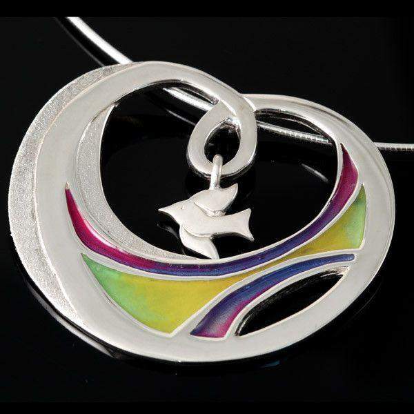 A superb pendant from the Shetland jewellery collection's "Simmermal" range, meticulously hand-crafted from sterling silver and complemented by vibrant enamel detailing. This piece exemplifies traditional Celtic craftsmanship, drawing inspiration from the rich cultural heritage of Shetland's ancient Ogham script. The combination of precious metal and carefully applied enamel creates a striking visual contrast, whilst the expert construction ensures durability and longevity. Each pendant is individually crafted, making it a distinctive addition to any jewellery collection. Ideal for those who appreciate authentic artisanal design with historical significance and timeless appeal.